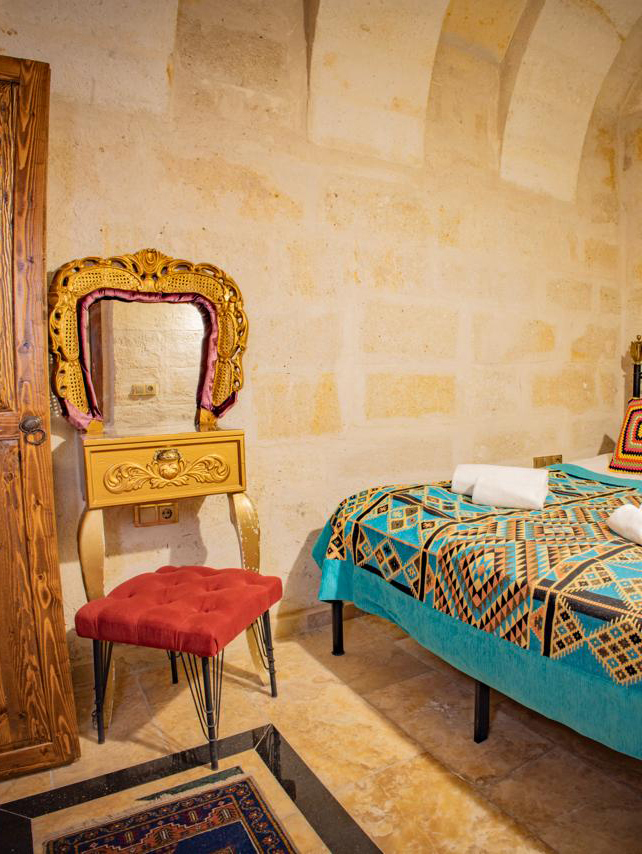 Bu oda el ile oyulmuş mağara konseptte olup , balayı konaklamaları için özel olarak dekore edilmiştir.Özel Spa kuveti olan bu oda’da çay, kahve yapma olanakları ve HD kalitede TV yayını Banyo ,tuvalet, duş ve saç kurutma makinesi ile donatılmıştır.