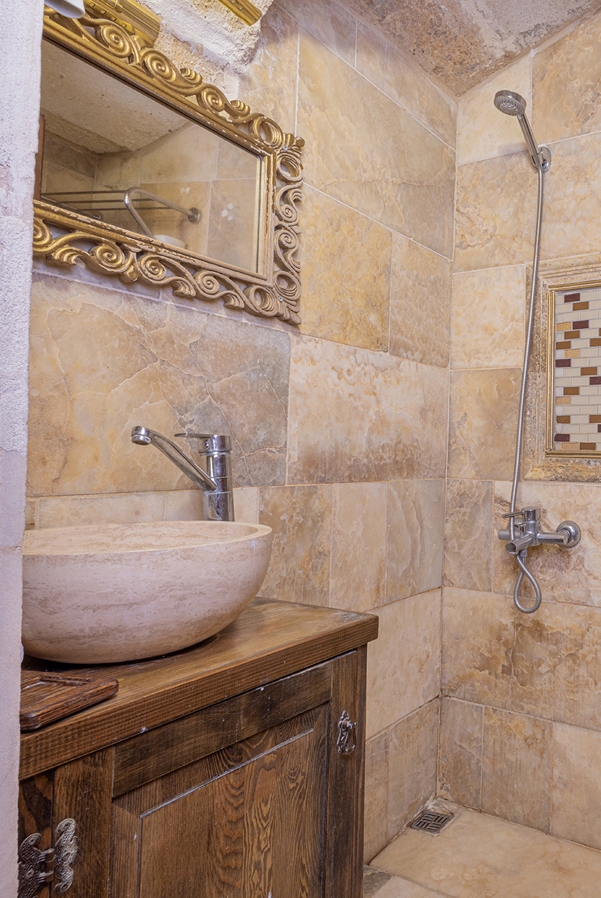 Özel Mağara olan bu oda Türk hamamına ve Jakuziye sahiptir. Bu mağara süitte oturma alanı ile özel mobilya takımı ,çay ,kahve yapma olanakları mevcuttur.Banyo ,tuvalet, duş ve saç kurutma makinesi ile donatılmıştır.