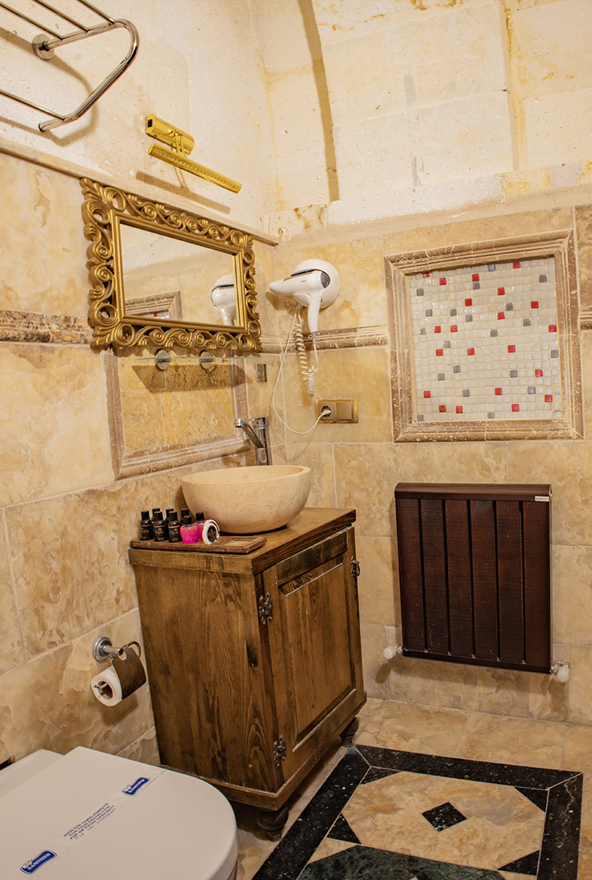 Geleneksel Taş mimariye sahip bu Oda’da çay, kahve yapma olanakları ve HD kalitede TV yayını mevcuttur. Banyo , tuvalet, duş ve saç kurutma makinesi ile donatılmıştır. (Bu oda Ex.Geniş Çift Kişilik Yatak tipine sahiptir).Bu oda 20 m2 ‘dir.