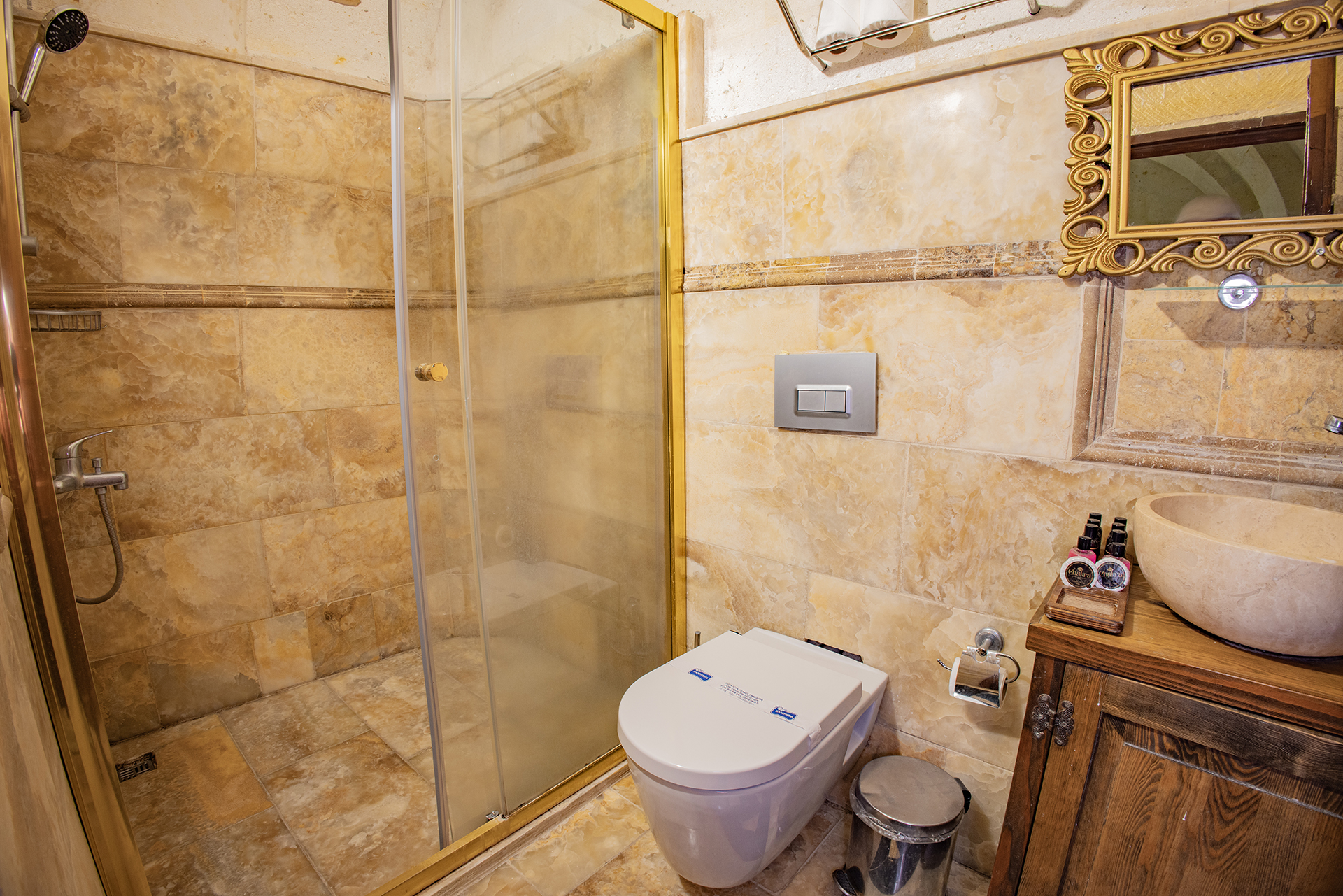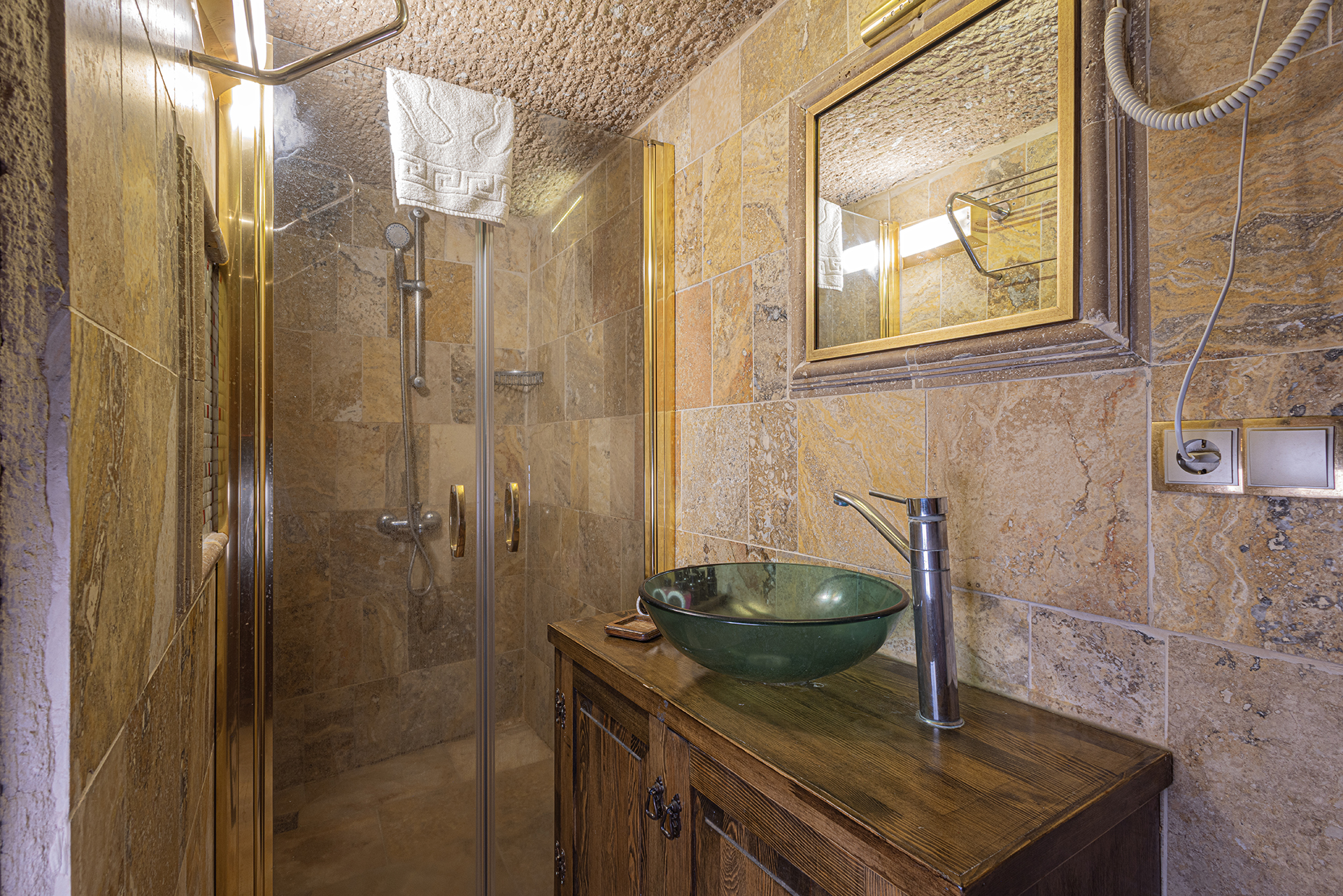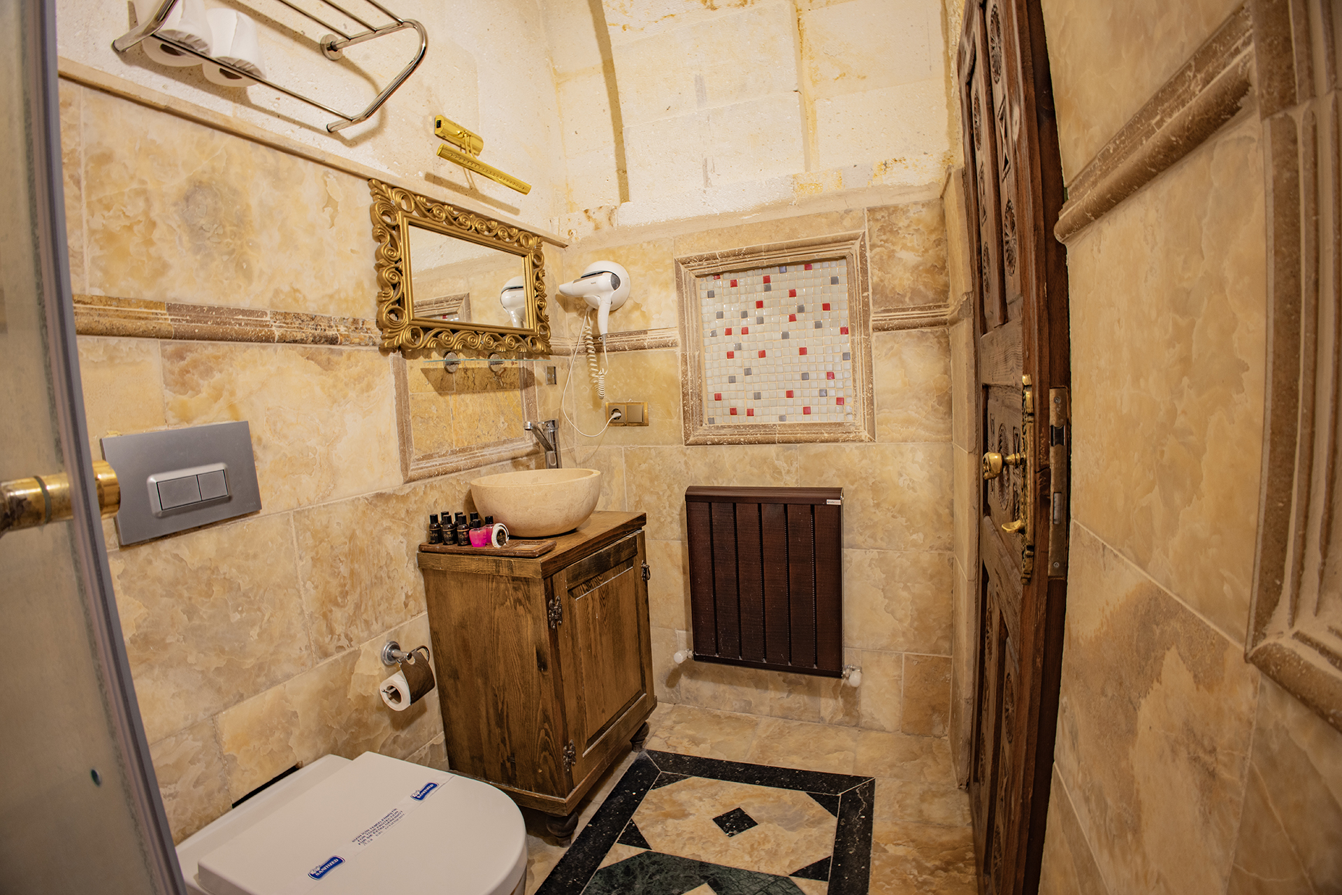 Özel Mağara olan bu oda Türk hamamına ve Jakuziye sahiptir. Bu mağara süitte oturma alanı ile özel mobilya takımı ,çay ,kahve yapma olanakları mevcuttur.Banyo ,tuvalet, duş ve saç kurutma makinesi ile donatılmıştır.
