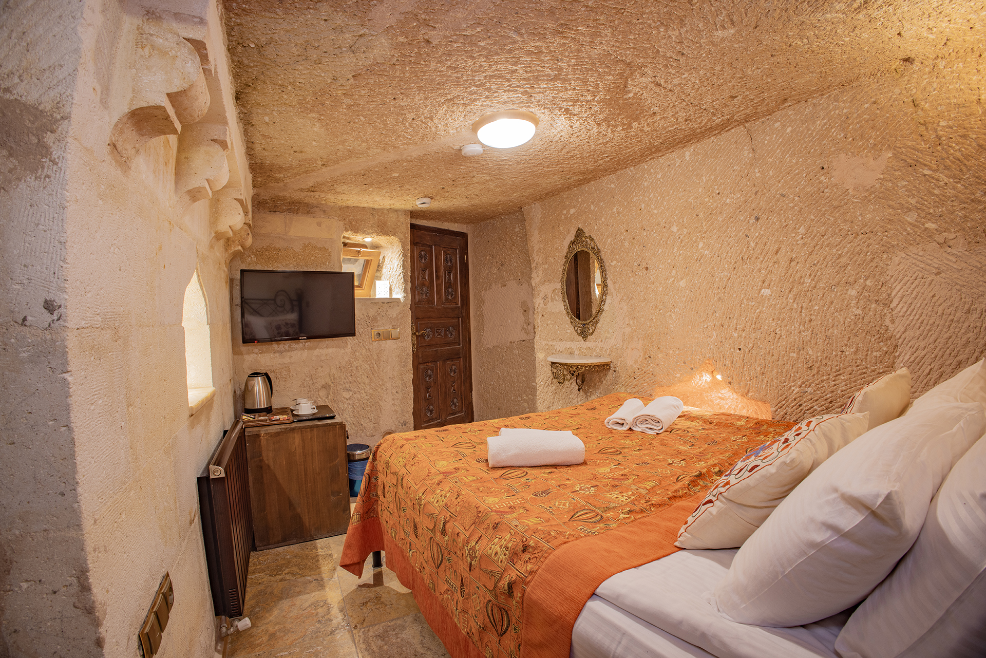 Bu oda el ile oyulmuş mağara konseptte olup , balayı konaklamaları için özel olarak dekore edilmiştir.Özel Spa kuveti olan bu oda’da çay, kahve yapma olanakları ve HD kalitede TV yayını Banyo ,tuvalet, duş ve saç kurutma makinesi ile donatılmıştır.