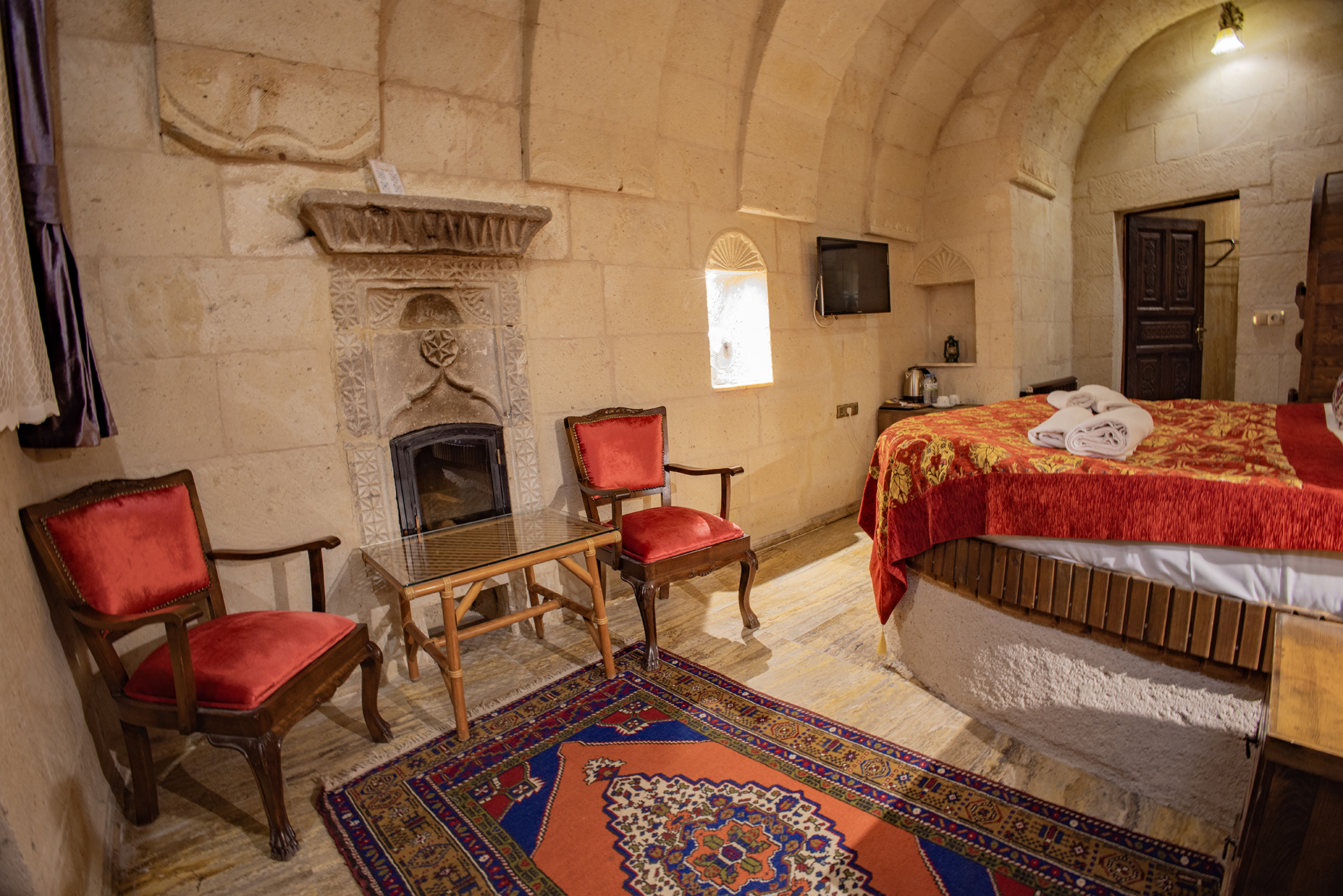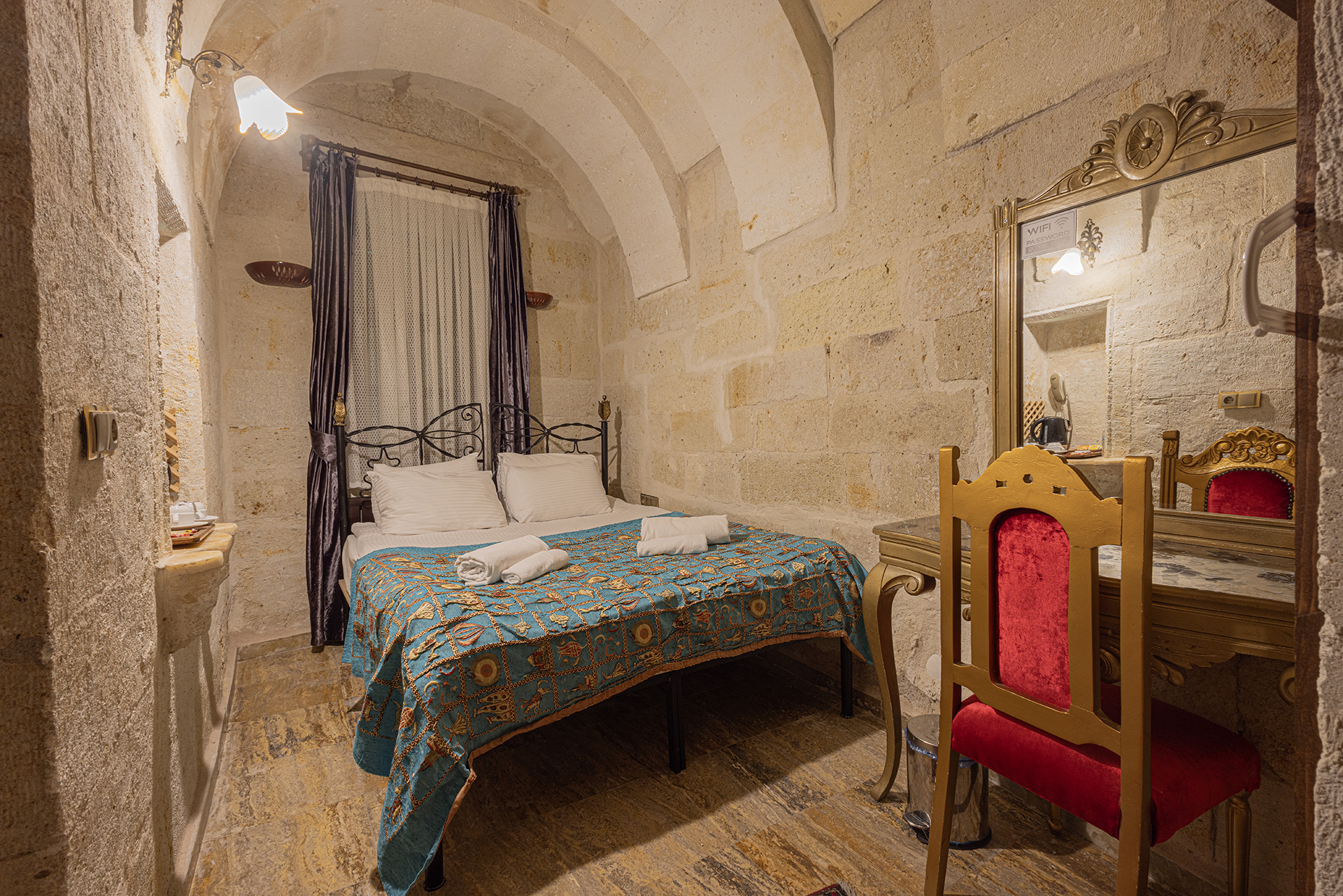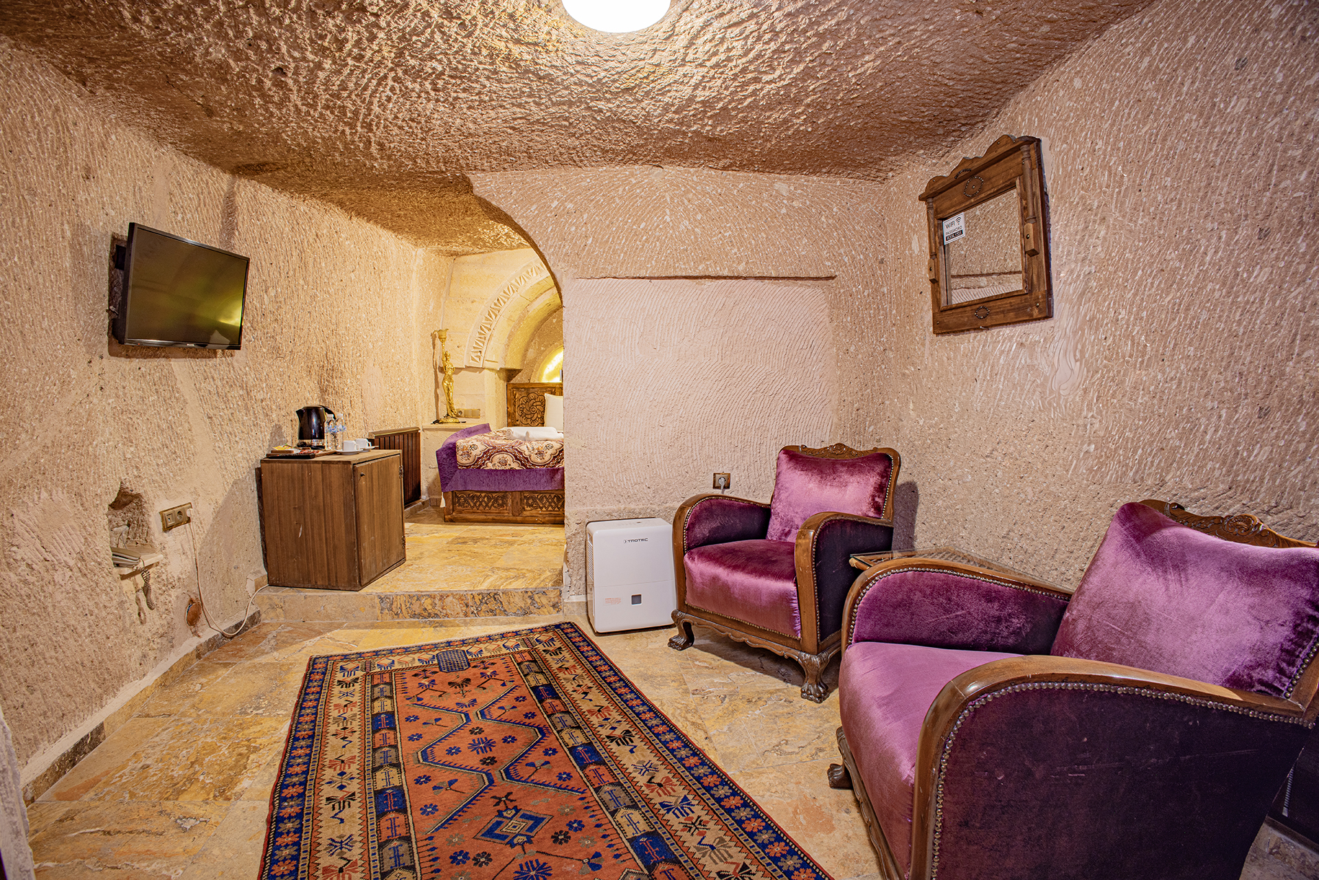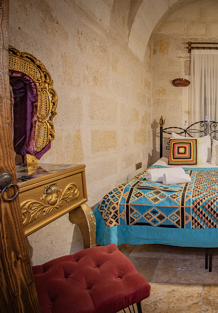 Bu oda el ile oyulmuş özel mağara konseptte olup çift kişiliktir. Bu Oda’da çay, kahve yapma olanakları ve HD kalitede TV yayını mevcuttur . Banyo tuvalet, duş ve saç kurutma makinesi ile donatılmıştır.