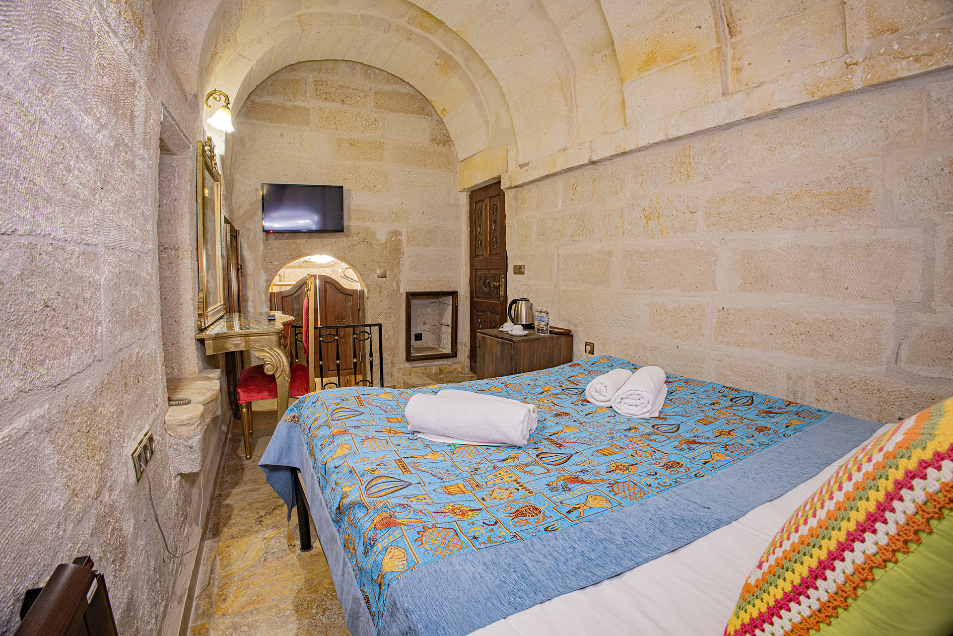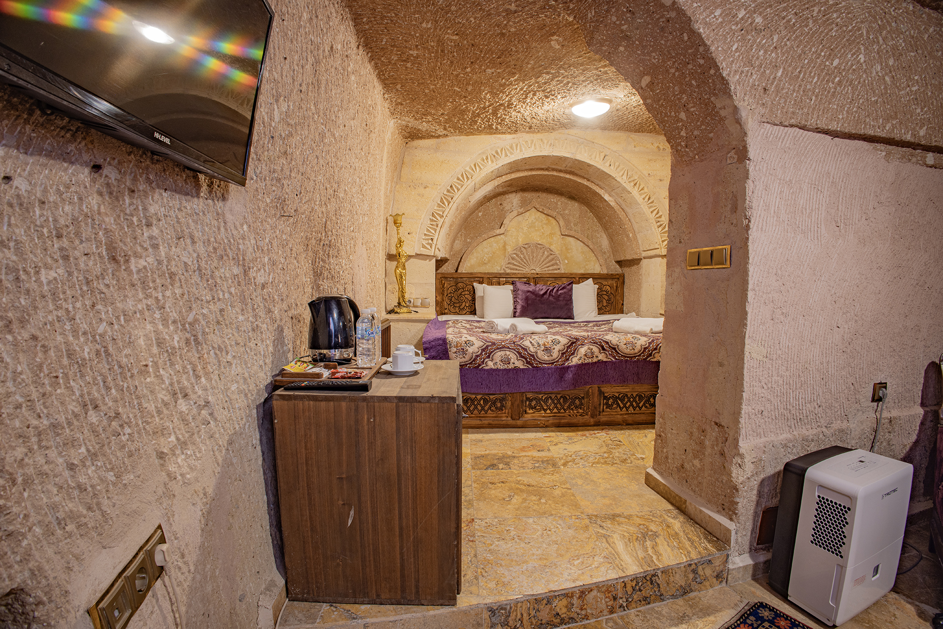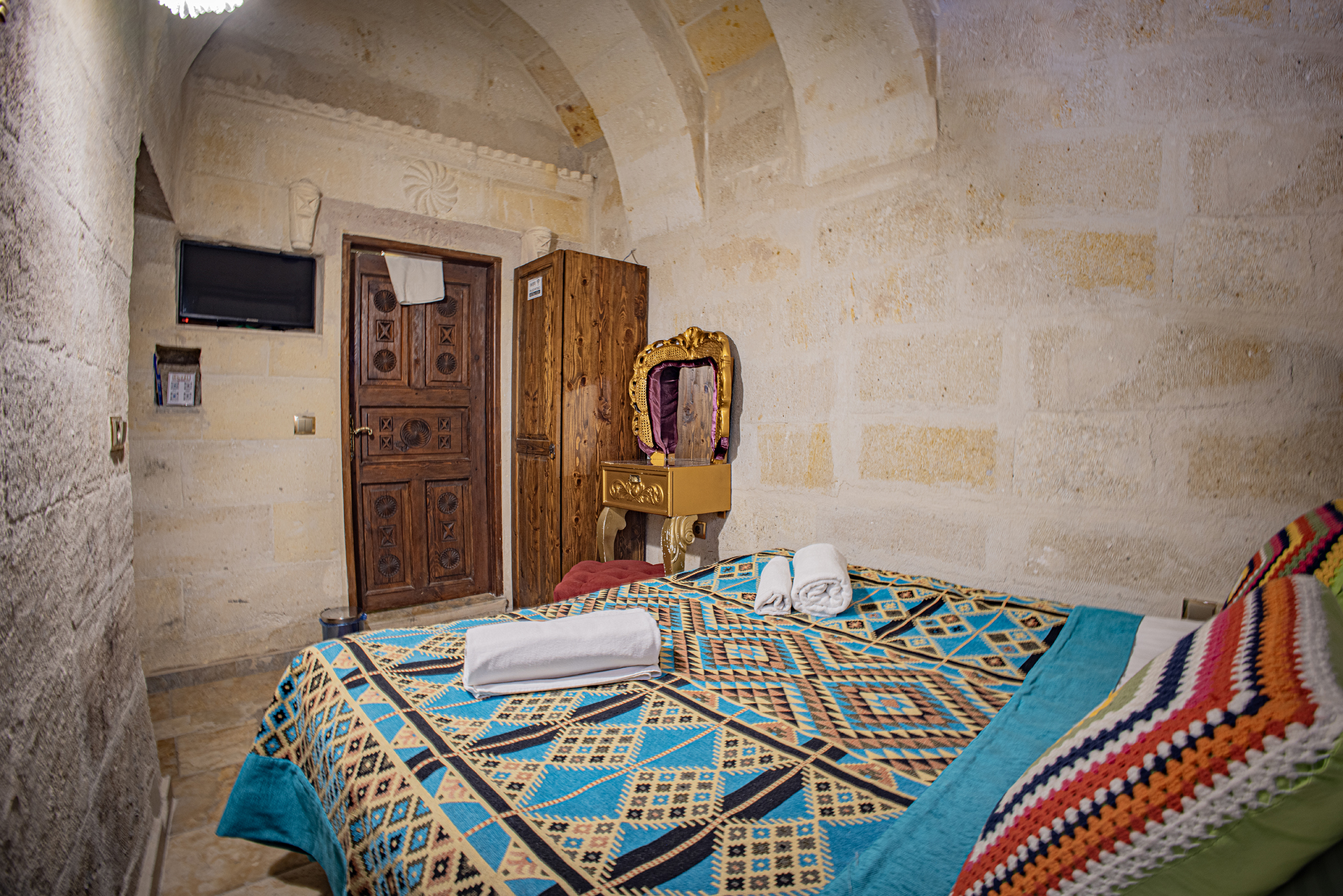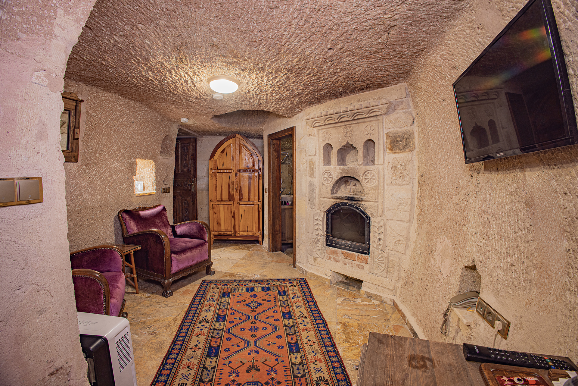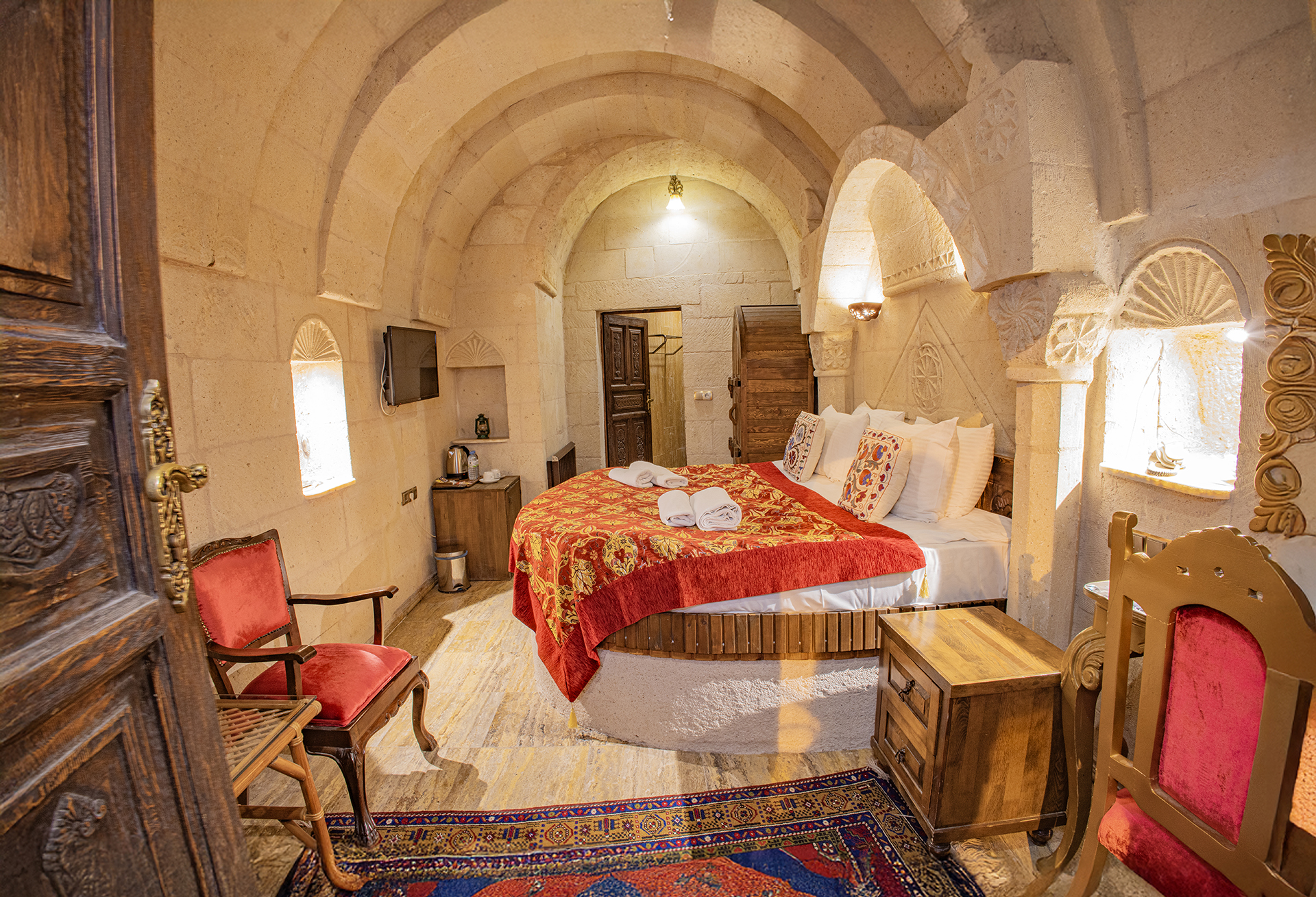 Bu oda el ile oyulmuş özel mağara konseptte olup çift kişiliktir. Bu Oda’da çay, kahve yapma olanakları ve HD kalitede TV yayını mevcuttur . Banyo tuvalet, duş ve saç kurutma makinesi ile donatılmıştır.
