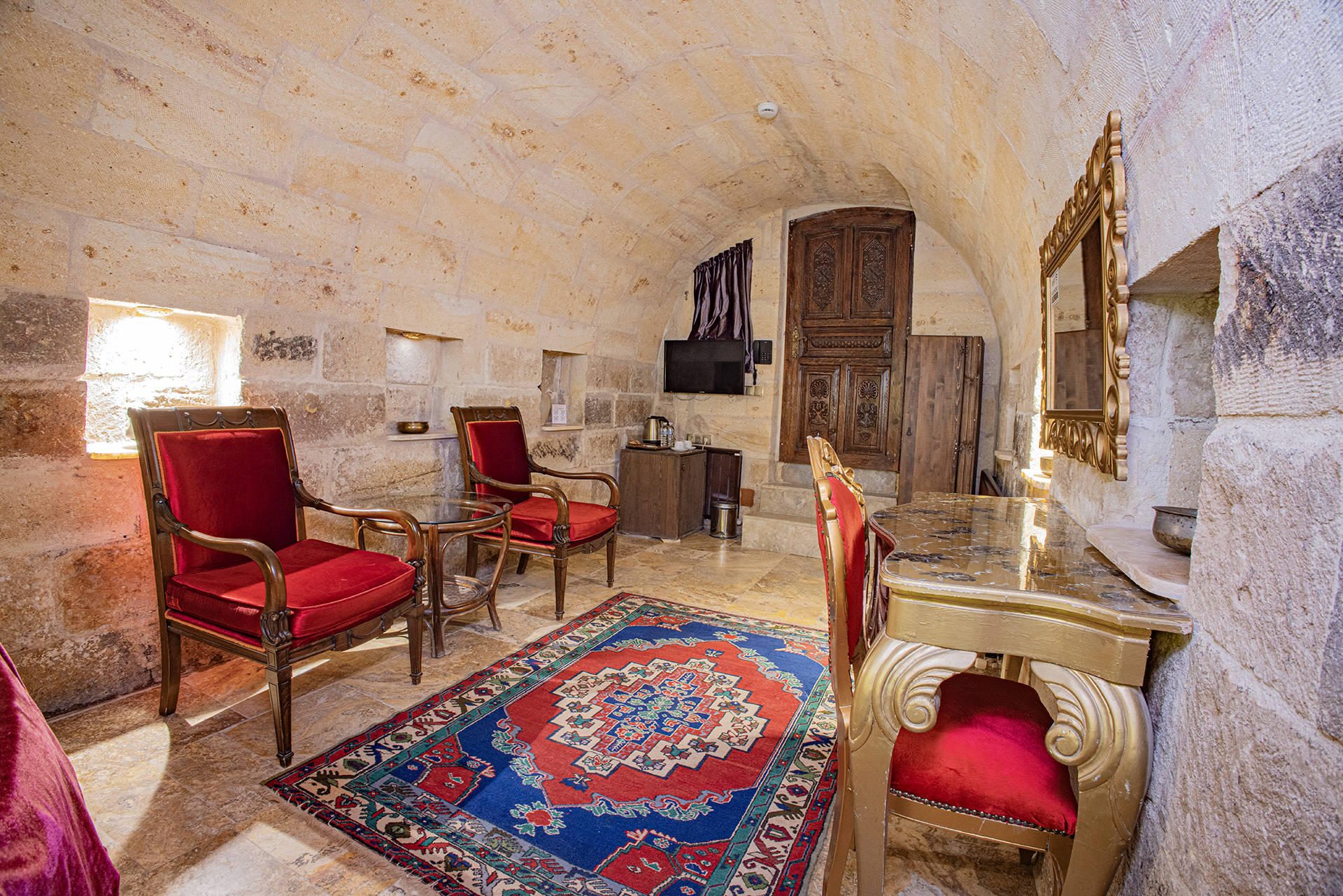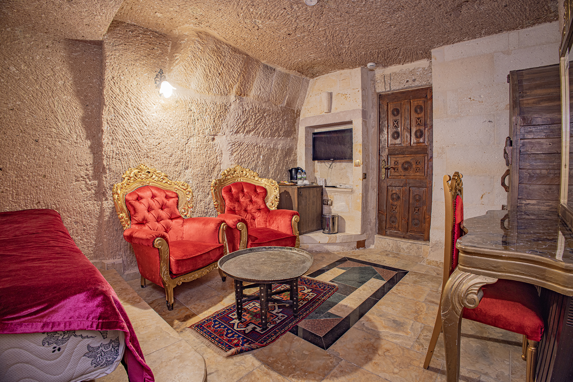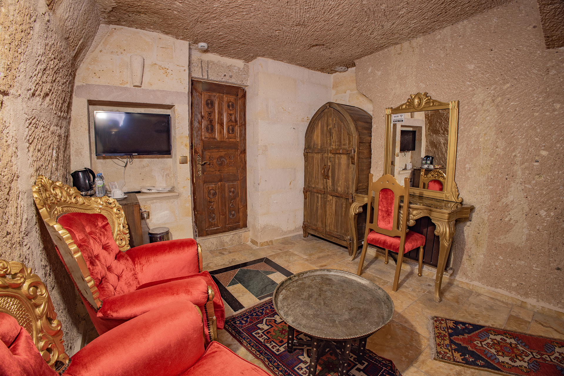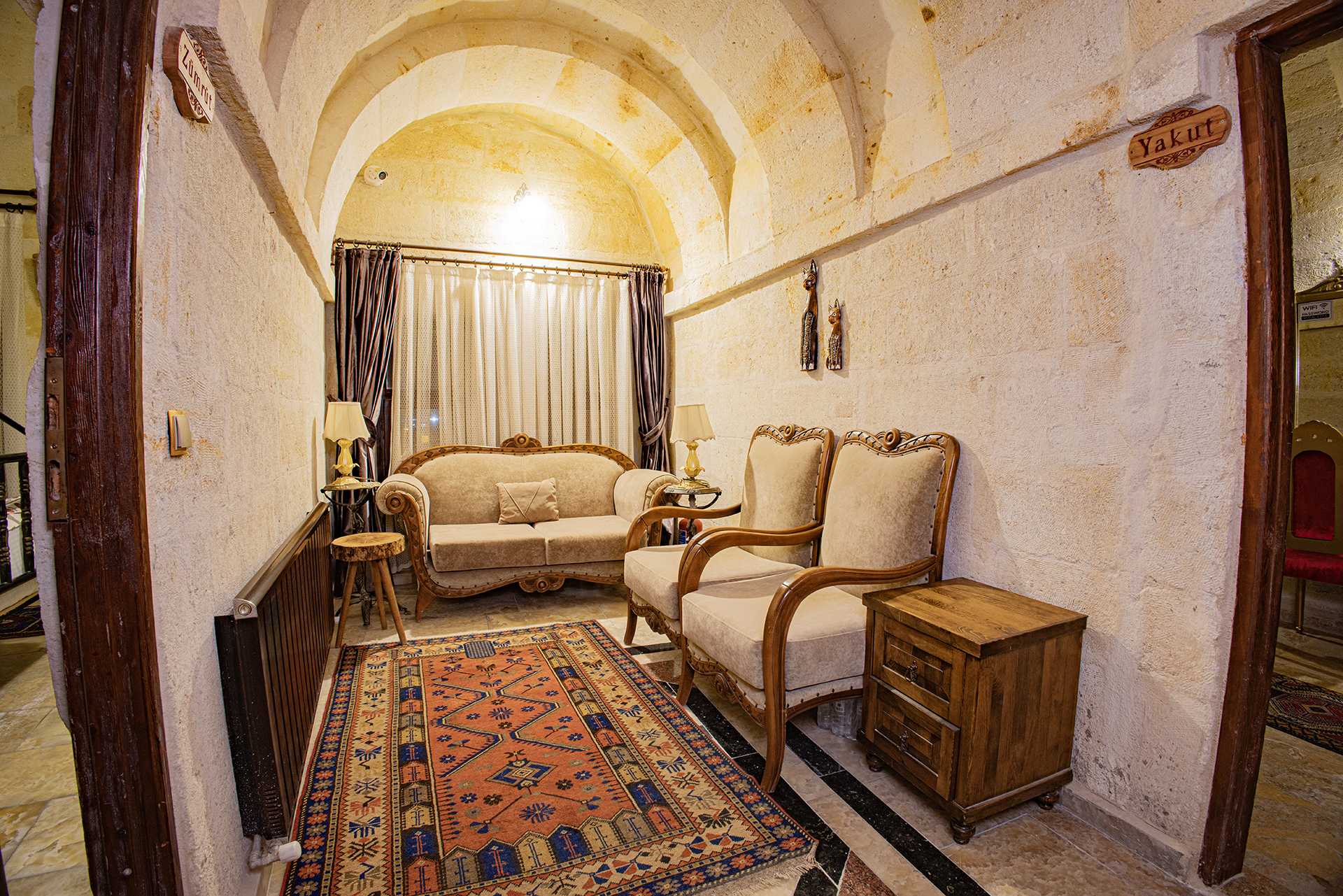 Bu oda el ile oyulmuş özel mağara konseptte olup çift kişiliktir. Bu Oda’da çay, kahve yapma olanakları ve HD kalitede TV yayını mevcuttur . Banyo tuvalet, duş ve saç kurutma makinesi ile donatılmıştır.