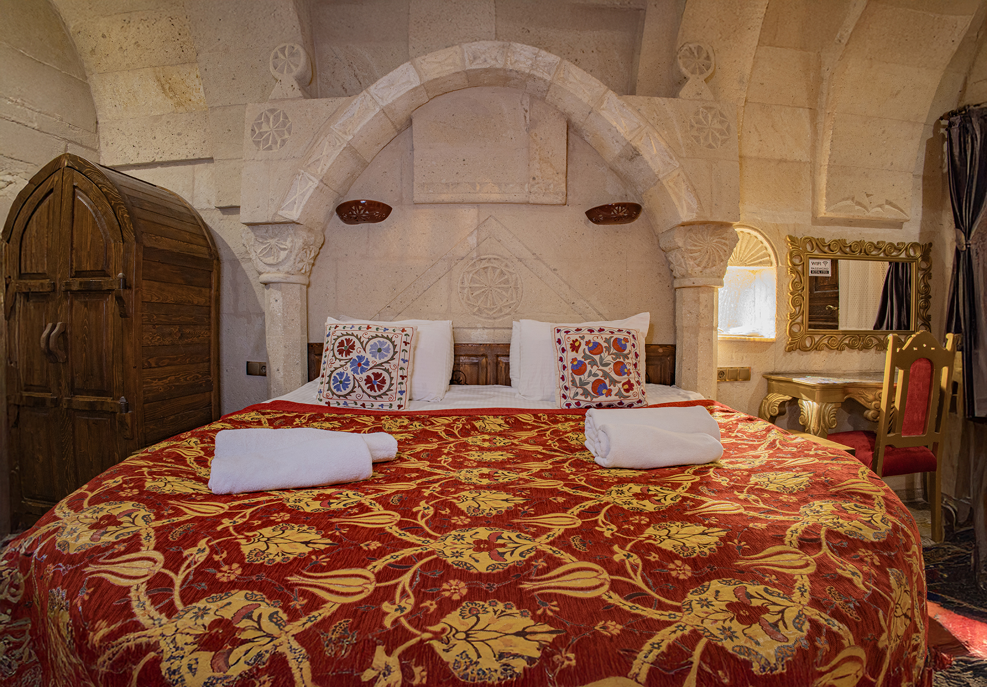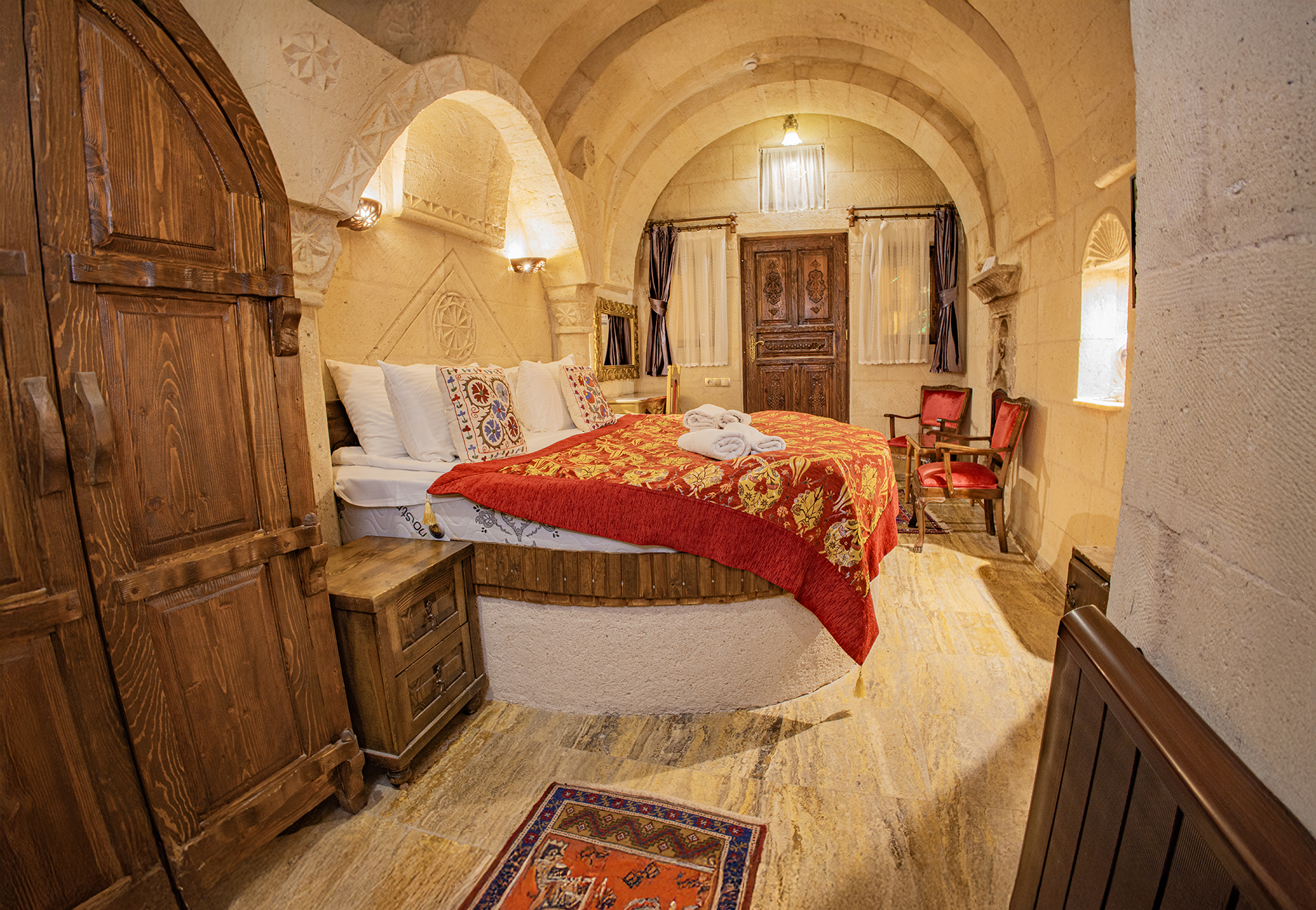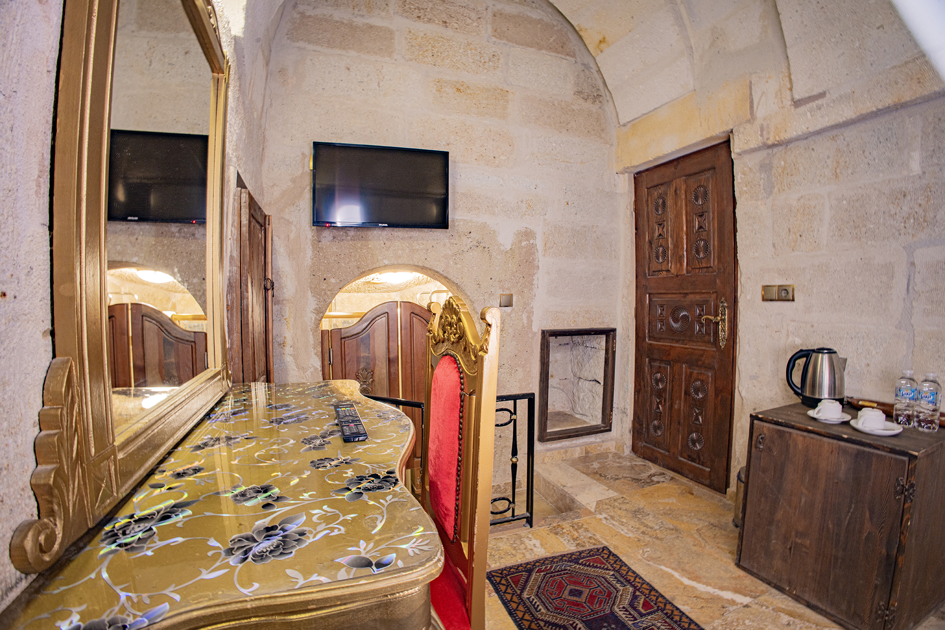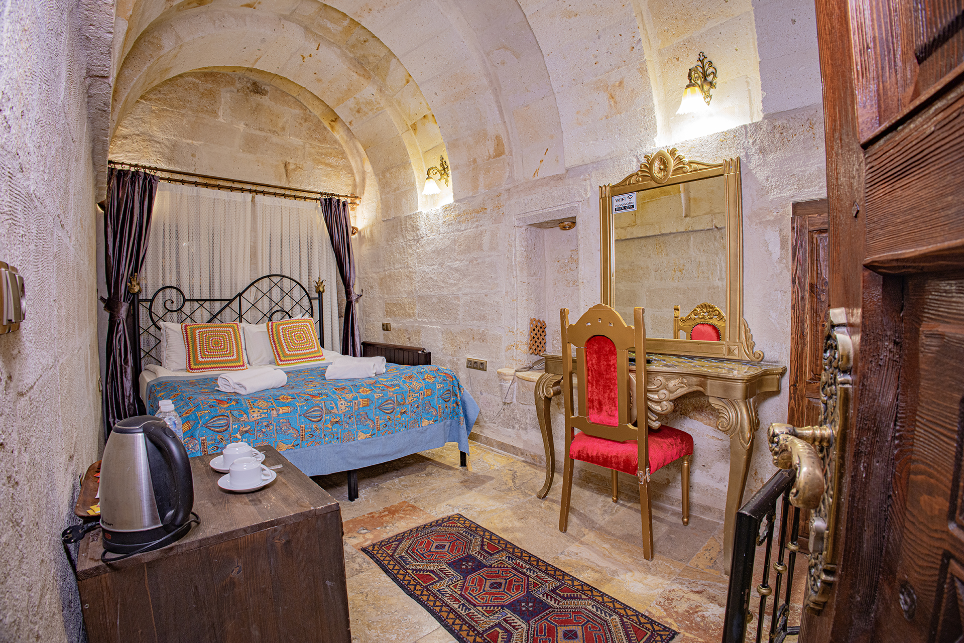 Bu oda el ile oyulmuş özel mağara konseptte olup çift kişiliktir. Bu Oda’da çay, kahve yapma olanakları ve HD kalitede TV yayını mevcuttur . Banyo tuvalet, duş ve saç kurutma makinesi ile donatılmıştır.
